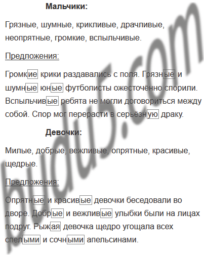 Рассмотрите два рисунка. Подберите имена прилагательные для характеристики мальчиков и имена прилагательные для характеристики девочек.