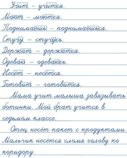 Обрати внимание, что у глаголов в форме 3-го лица множественного и единственного числа в тся нет мягкого знака!
