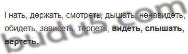 Гнать, держать, смотреть, дышать, ненавидеть, обидеть, зависеть, терпеть.