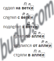 Составьте словосочетания, употребив существительные ветка, аллея в нужных падежах. Допишите.