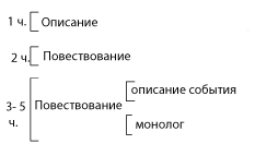 2. Рассмотрите схему строения прочитанного вами текста и укажите место каждого из типов речи.